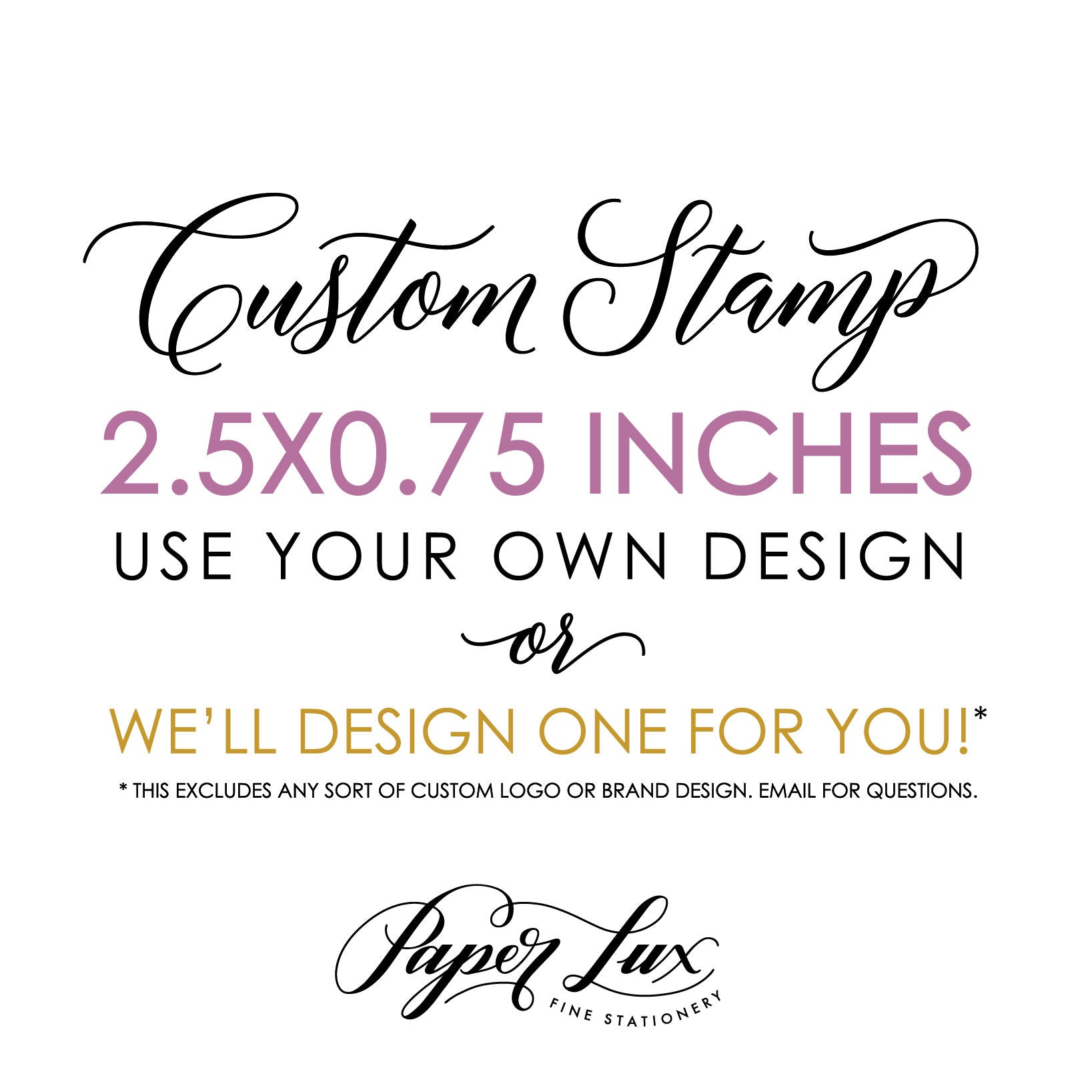 This listing is for a 2.5"x0.75" rubber stamp with an optional wood mounted handle. Get a custom stamp for yourself, for your business, for packaging, for wedding branding, or favors. These also make great gifts for newlyweds, new business owners, for the holidays, or for a house warming.