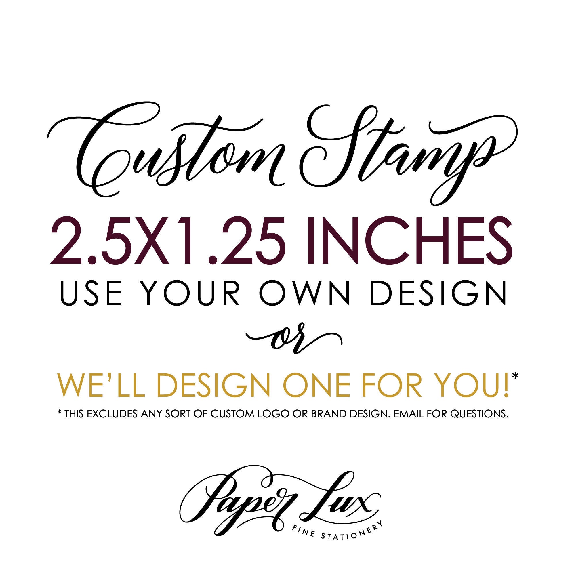 This listing is for a 2.5"x1.25" rubber stamp with an optional wood mounted handle. Get a custom stamp for yourself, for your business, for packaging, for wedding branding, or favors. These also make great gifts for newlyweds, new business owners, for the holidays, or for a house warming.