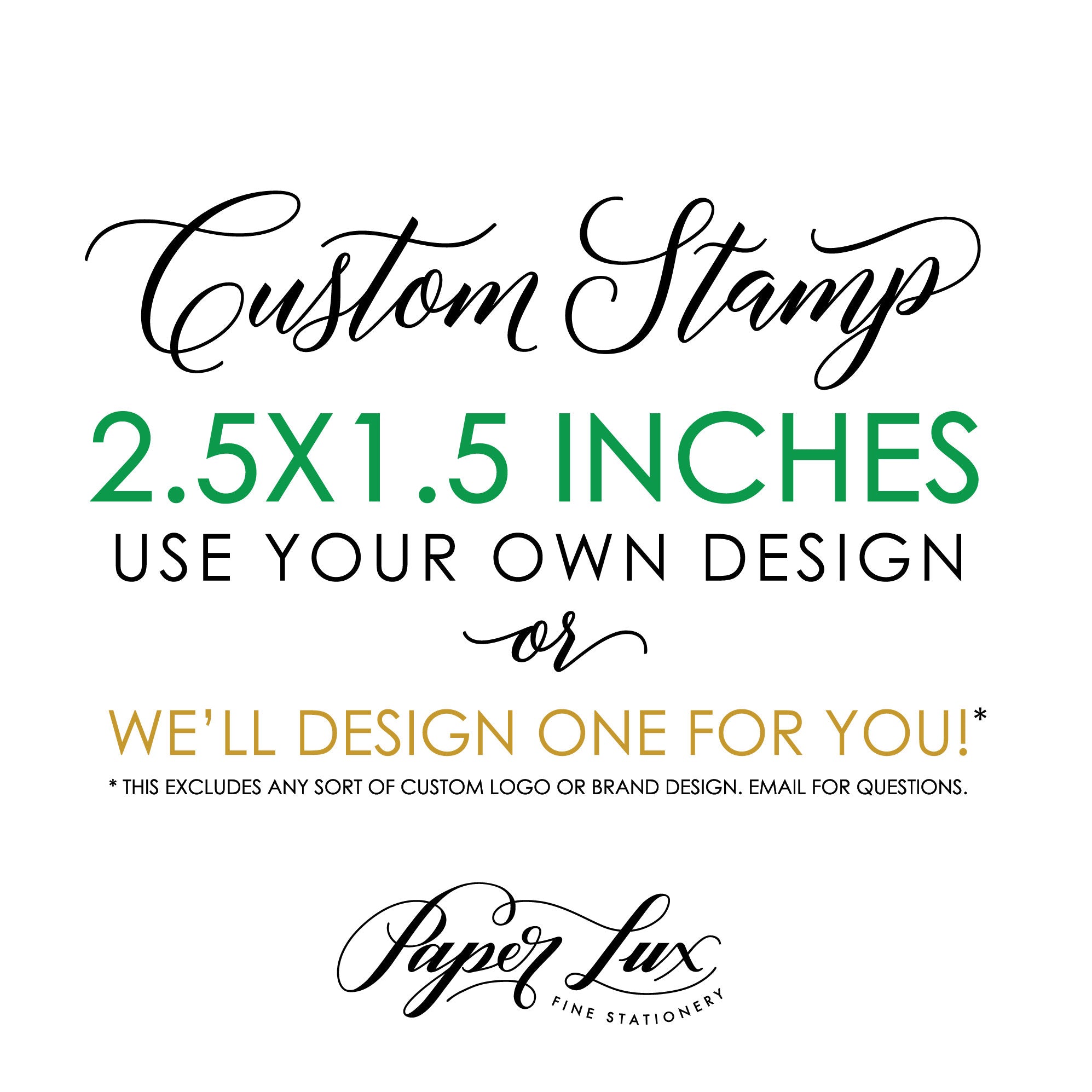 This listing is for a 2.5"x1.5" rubber stamp with an optional wood mounted handle. Get a custom stamp for yourself, for your business, for packaging, for wedding branding, or favors. These also make great gifts for newlyweds, new business owners, for the holidays, or for a house warming.
