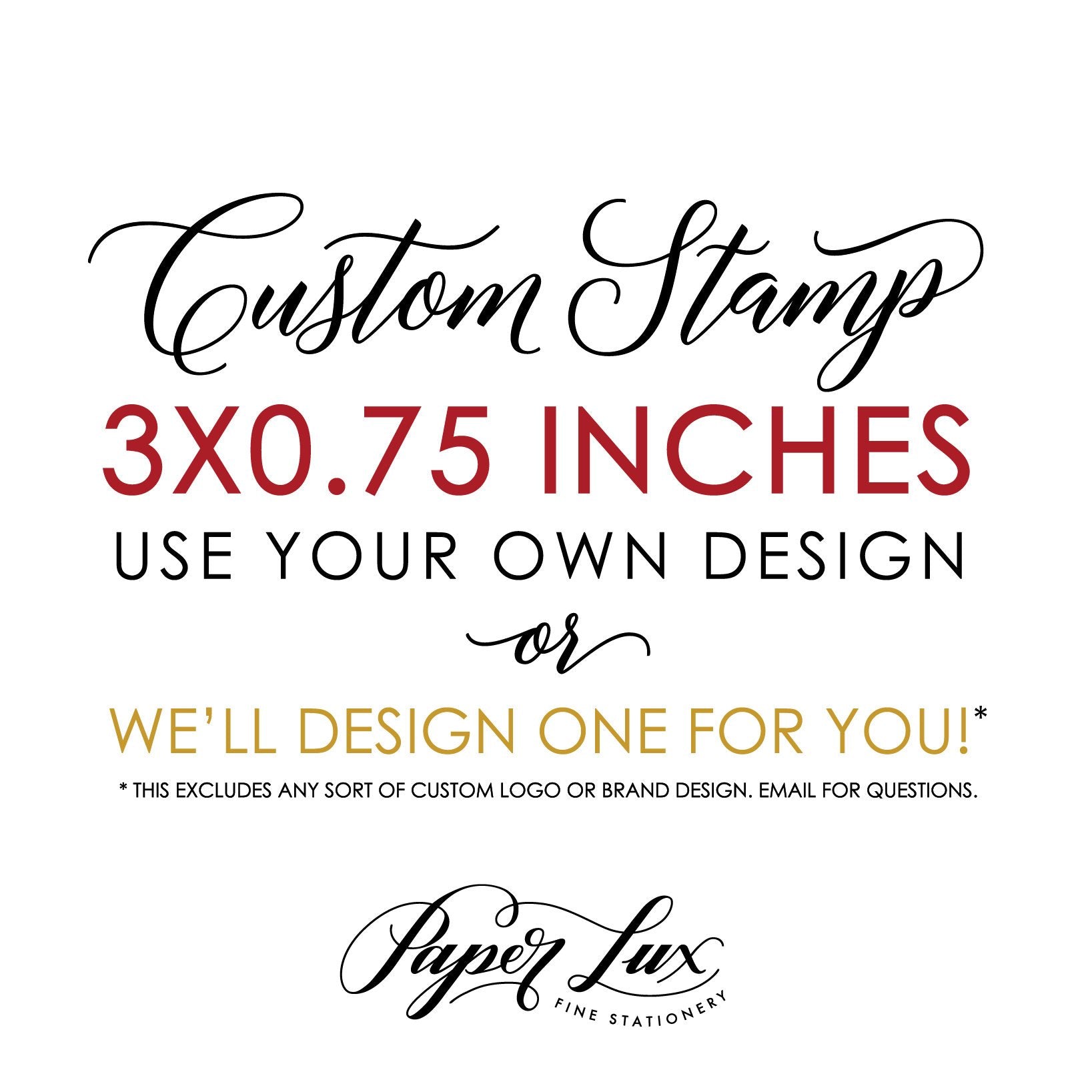 This listing is for a 3"x0.75" rubber stamp with an optional wood mounted handle. Get a custom stamp for yourself, for your business, for packaging, for wedding branding, or favors. These also make great gifts for newlyweds, new business owners, for the holidays, or for a house warming.