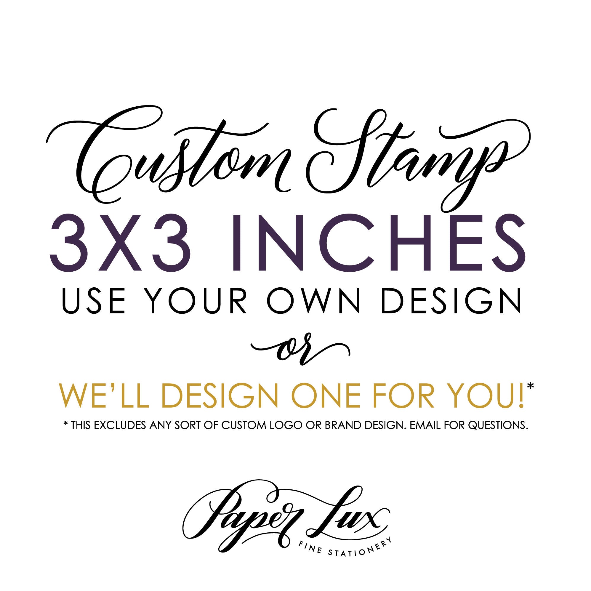 This listing is for a 3"x3" rubber stamp with an optional wood mounted handle. Get a custom stamp for yourself, for your business, for packaging, for wedding branding, or favors. These also make great gifts for newlyweds, new business owners, for the holidays, or for a house warming.