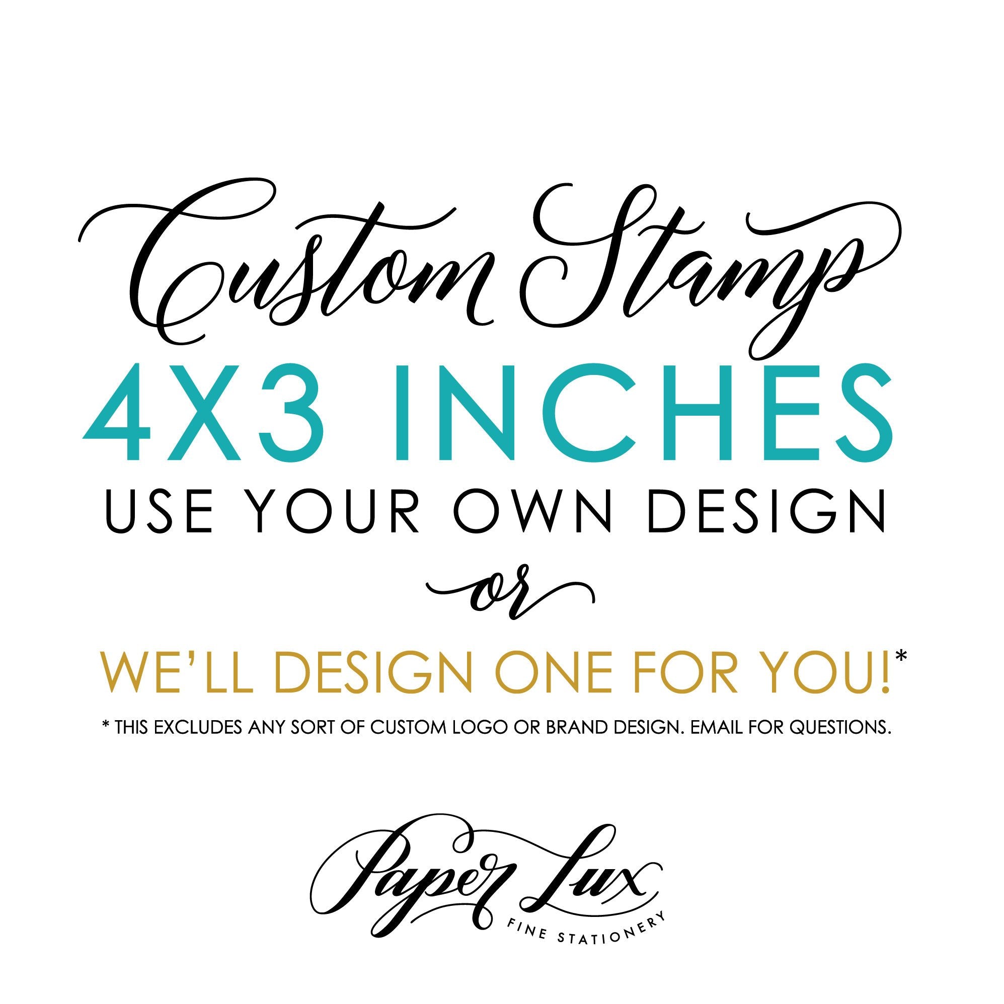 This listing is for a 4"x3" rubber stamp with an optional wood mounted handle. Get a custom stamp for yourself, for your business, for packaging, for wedding branding, or favors. These also make great gifts for newlyweds, new business owners, for the holidays, or for a house warming.