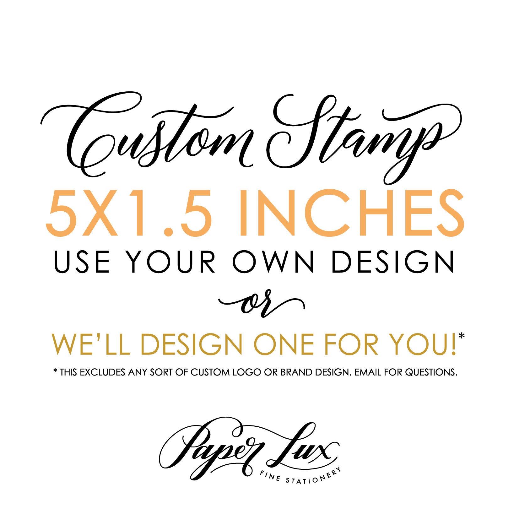This listing is for a 5"x1.5" rubber stamp with an optional wood mounted handle. Get a custom stamp for yourself, for your business, for packaging, for wedding branding, or favors. These also make great gifts for newlyweds, new business owners, for the holidays, or for a house warming.