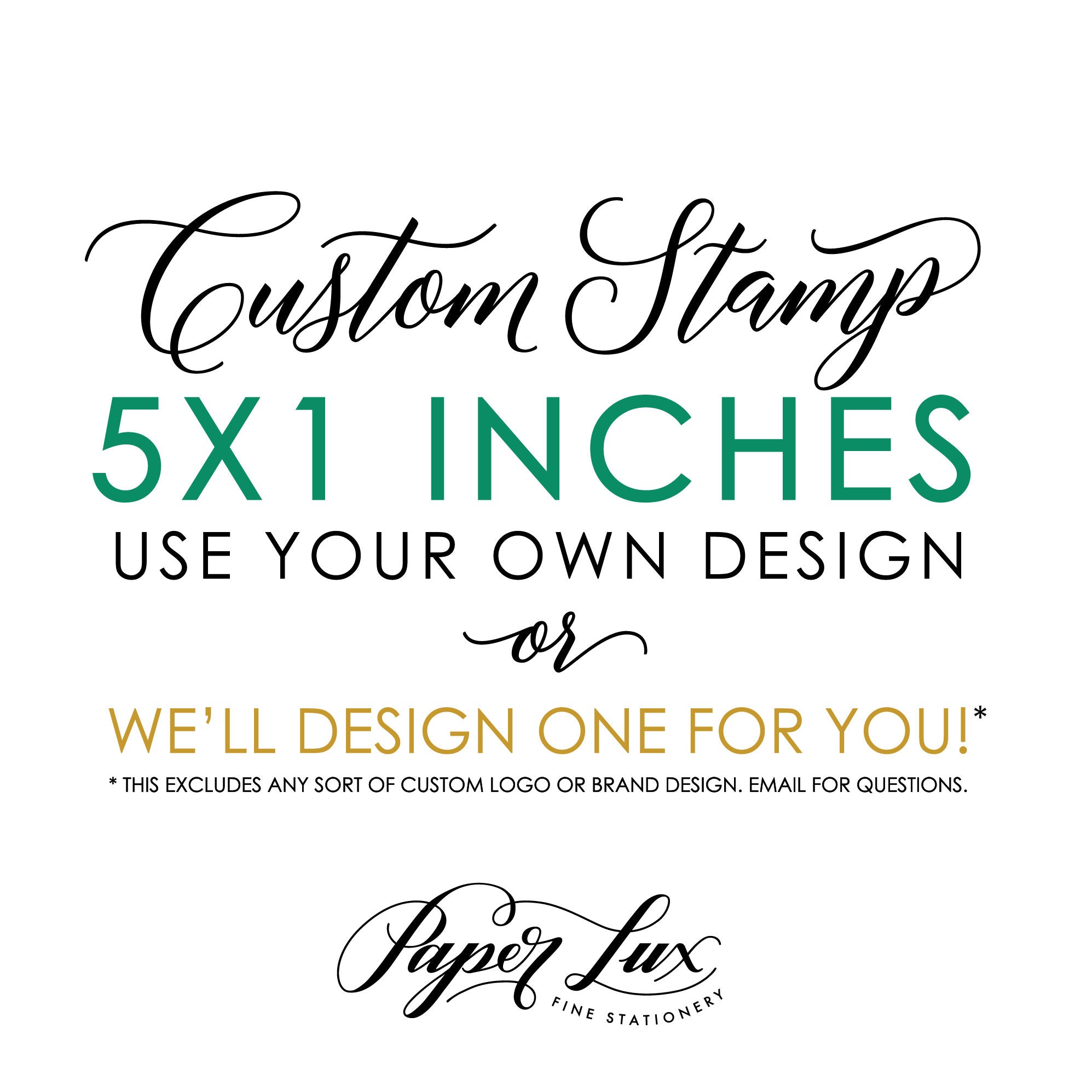 This listing is for a 5"x1" rubber stamp with an optional wood mounted handle. Get a custom stamp for yourself, for your business, for packaging, for wedding branding, or favors. These also make great gifts for newlyweds, new business owners, for the holidays, or for a house warming.
