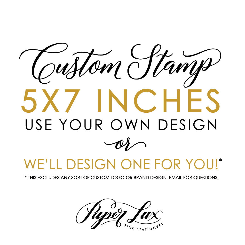 This listing is for a 5"x7" rubber stamp with an optional wood mounted handle. Get a custom stamp for yourself, for your business, for packaging, for wedding branding, or favors. These also make great gifts for newlyweds, new business owners, for the holidays, or for a house warming.