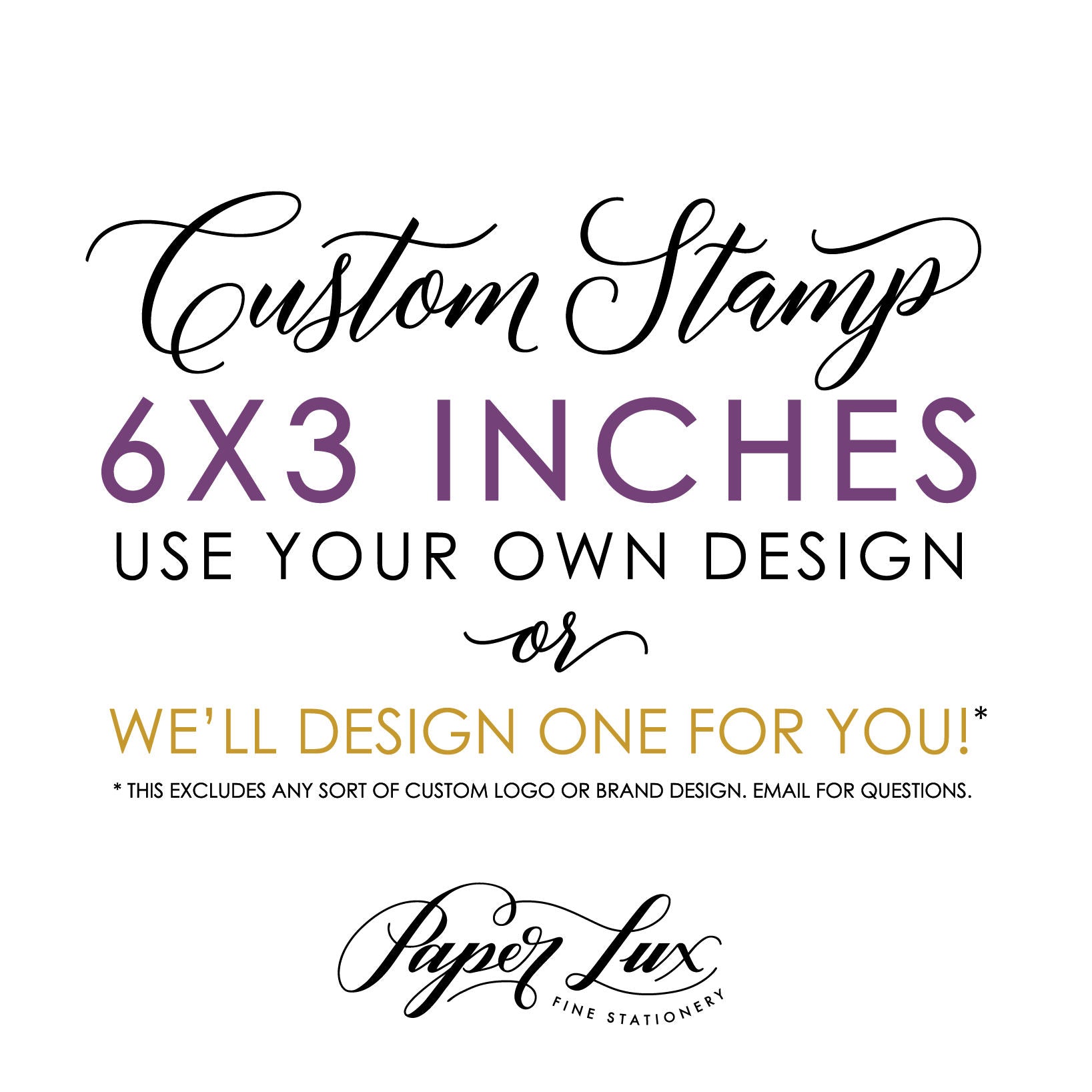 This listing is for a 6"x3" rubber stamp with an optional wood mounted handle. Get a custom stamp for yourself, for your business, for packaging, for wedding branding, or favors. These also make great gifts for newlyweds, new business owners, for the holidays, or for a house warming.